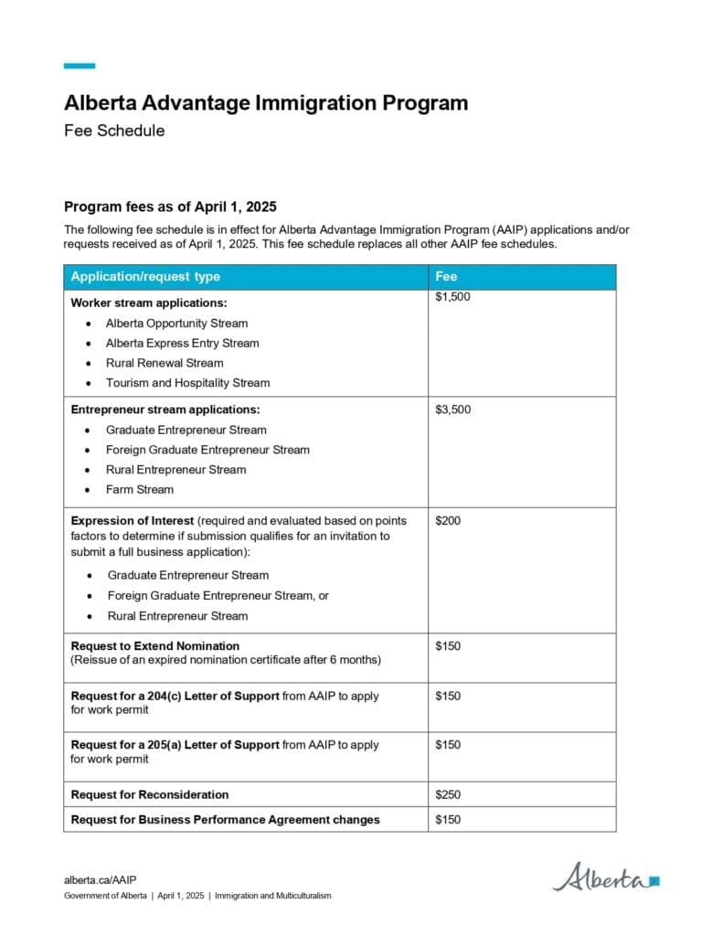 Effective April 1, 2025, the application fee for AAIP worker streams is $1,500. This adjustment is necessary to align the fee with service delivery costs. All other AAIP services fees will remain unchanged at this time.